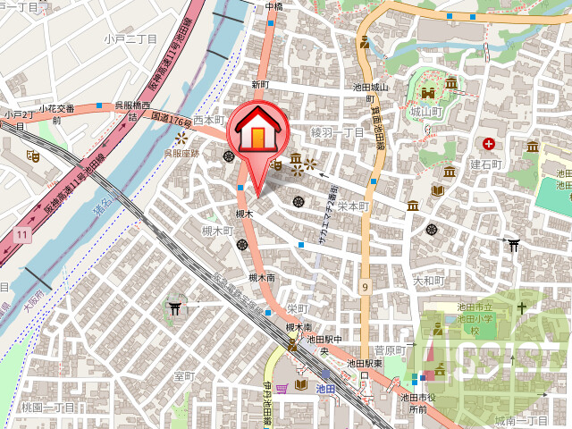| 交通 | 阪急宝塚本線/池田駅 徒歩7分 阪急宝塚本線/川西能勢口駅 徒歩17分 能勢電鉄妙見線川西能勢口駅 徒歩17分 |